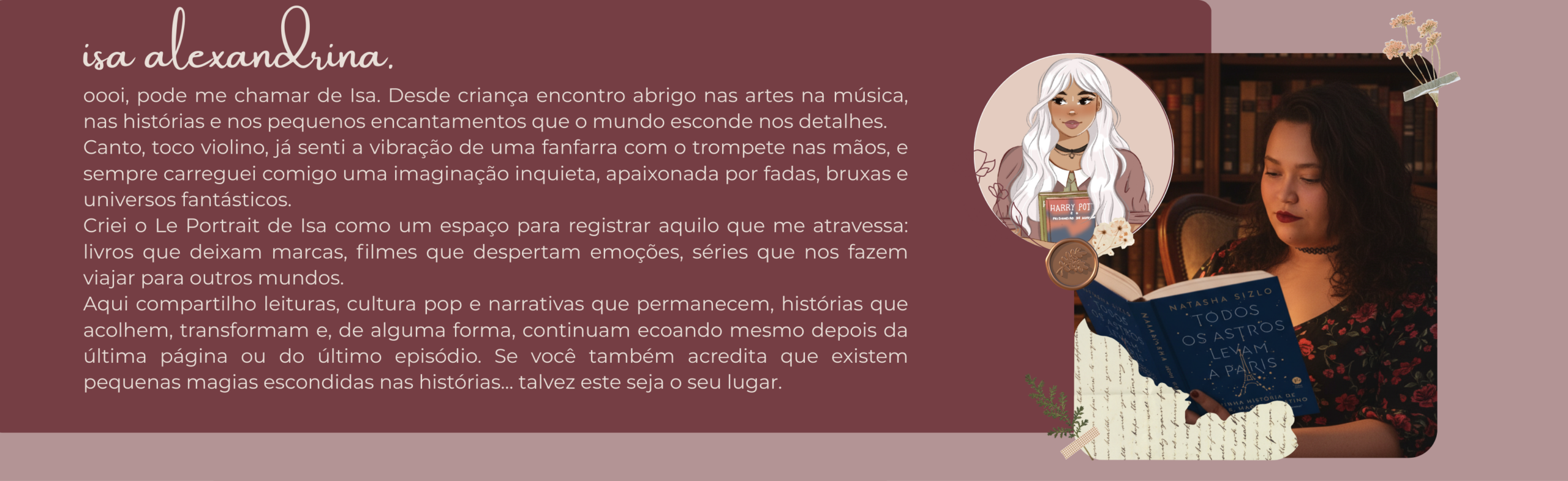 Sou Isa, apaixonada por artes, música e histórias desde a infância. No Le Portrait de Isa, compartilho livros, filmes e séries que me atravessam narrativas cheias de emoção, fantasia e pequenas magias que permanecem além da última página.